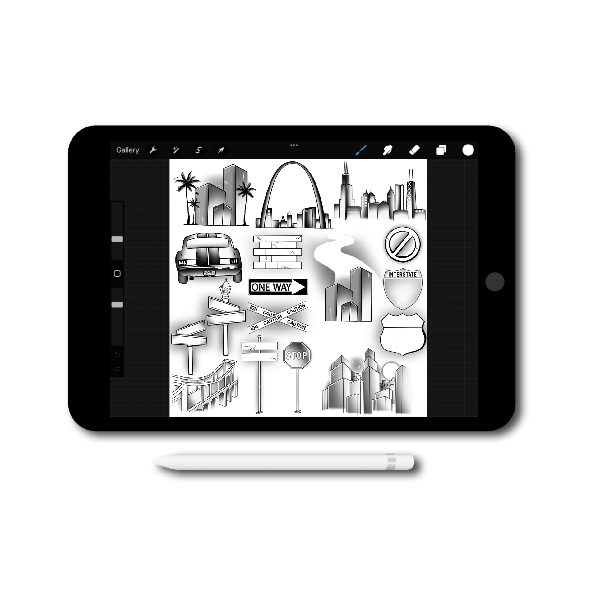 Navigate the urban landscape and infuse energy into your drawings with our Livin’ Procreate Brush Set. From buildings to street signs, each brush is designed to capture the essence of city living.